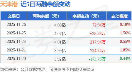 证券之星消息,11月26日,天津港(600717)融资买入1469.1万元,融资偿还1386.23万元,融资净买入82.87万元,融资余额4.06亿元,近3个交易日已连续净买入累计958.45万元,近20个交易日中有12个交易日出现融资净买入。