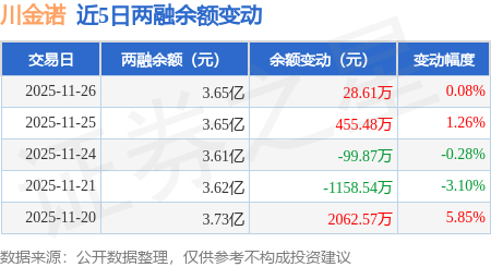 证券之星消息,11月26日,川金诺(300505)融资买入3211.56万元,融资偿还3182.95万元,融资净买入28.61万元,融资余额3.65亿元,近20个交易日中有11个交易日出现融资净买入。