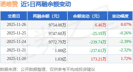 证券之星消息,11月26日,诺唯赞(688105)融资买入329.28万元,融资偿还323.92万元,融资净买入5.36万元,融资余额9704.47万元。
