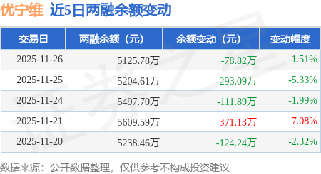 证券之星消息,11月26日,优宁维(301166)融资买入344.58万元,融资偿还423.4万元,融资净卖出78.82万元,融资余额5125.78万元。