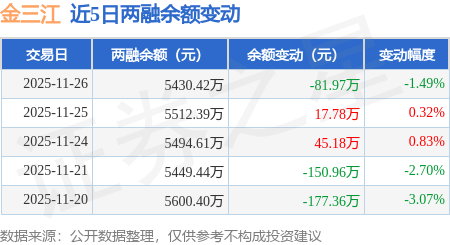 证券之星消息,11月26日,金三江(301059)融资买入254.86万元,融资偿还336.83万元,融资净卖出81.97万元,融资余额5430.42万元。