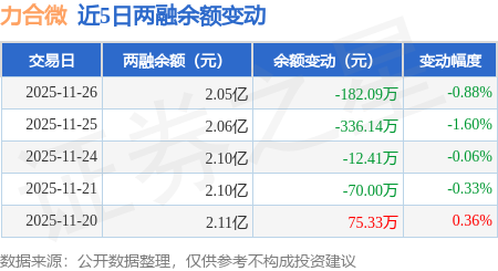 证券之星消息,11月26日,力合微(688589)融资买入423.77万元,融资偿还605.86万元,融资净卖出182.09万元,融资余额2.05亿元,近20个交易日中有11个交易日出现融资净买入。