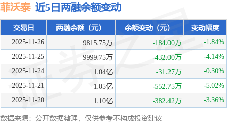 证券之星消息,11月26日,菲沃泰(688371)融资买入303.93万元,融资偿还487.93万元,融资净卖出184.0万元,融资余额9815.75万元。