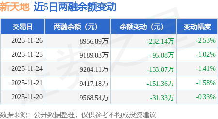 证券之星消息,11月26日,新天地(301277)融资买入545.44万元,融资偿还777.59万元,融资净卖出232.14万元,融资余额8956.89万元。