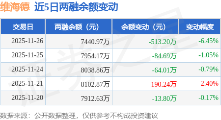 证券之星消息,11月26日,维海德(301318)融资买入590.99万元,融资偿还1104.19万元,融资净卖出513.2万元,融资余额7440.97万元。
