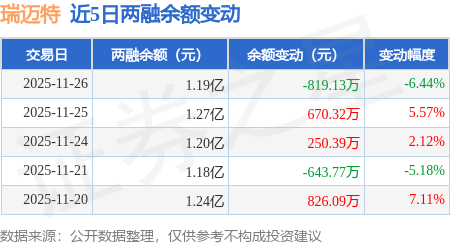 证券之星消息,11月26日,瑞迈特(301367)融资买入1689.59万元,融资偿还2488.32万元,融资净卖出798.74万元,融资余额1.18亿元。