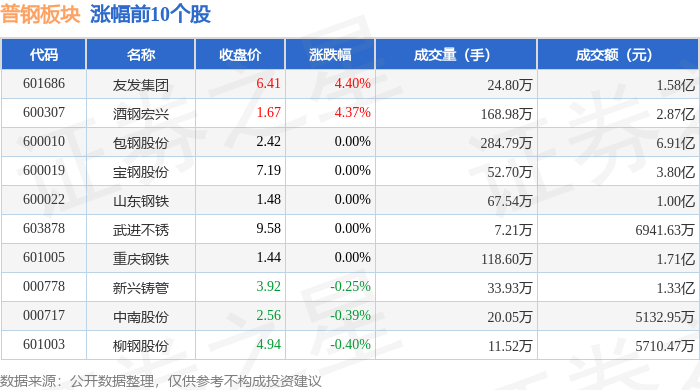 证券之星消息,11月27日普钢板块较上一交易日下跌0.34%,三钢闽光领跌。当日上证指数报收于3875.26,上涨0.29%。深证成指报收于12875.19,下跌0.25%。普钢板块个股涨跌见下表: