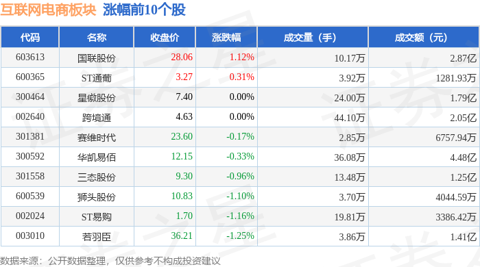 从资金流向上来看,当日互联网电商板块主力资金净流出2.52亿元,游资资金净流出4175.61万元,散户资金净流入2.94亿元。互联网电商板块个股资金流向见下表: