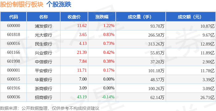 从资金流向上来看,当日股份制银行板块主力资金净流出3360.95万元,游资资金净流入4702.0万元,散户资金净流出1341.06万元。股份制银行板块个股资金流向见下表: