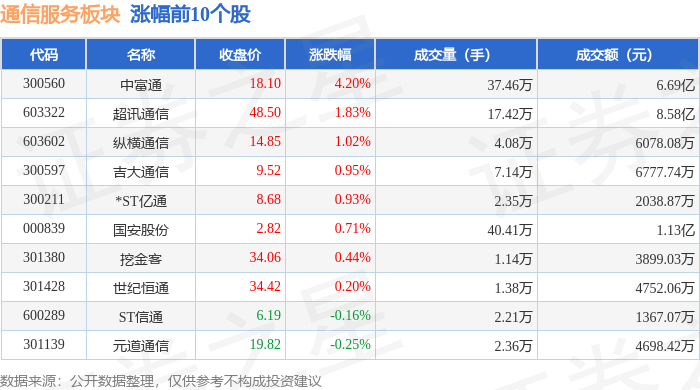 证券之星消息,11月27日通信服务板块较上一交易日下跌0.91%,宜通世纪领跌。当日上证指数报收于3875.26,上涨0.29%。深证成指报收于12875.19,下跌0.25%。通信服务板块个股涨跌见下表:
