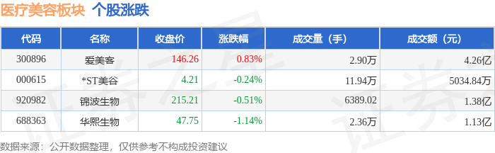 证券之星消息,11月27日医疗美容板块较上一交易日下跌0.04%,华熙生物领跌。当日上证指数报收于3875.26,上涨0.29%。深证成指报收于12875.19,下跌0.25%。医疗美容板块个股涨跌见下表: