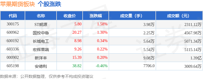 证券之星消息,11月27日苹果期货板块较上一交易日上涨0.27%,ST朗源领涨。当日上证指数报收于3875.26,上涨0.29%。深证成指报收于12875.19,下跌0.25%。苹果期货板块个股涨跌见下表: