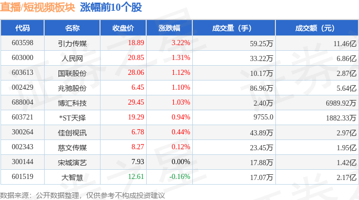 从资金流向上来看,当日直播/短视频板块主力资金净流出19.56亿元,游资资金净流入4328.91万元,散户资金净流入19.12亿元。直播/短视频板块个股资金流向见下表: