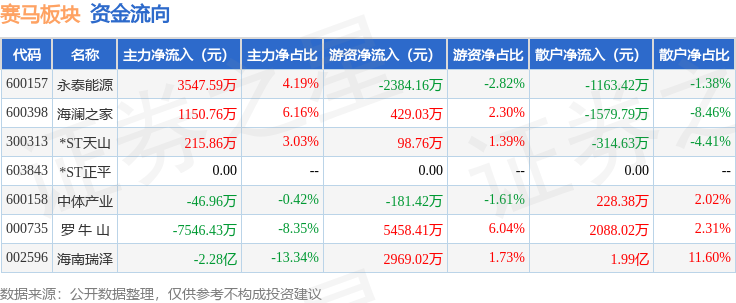 从资金流向上来看,当日赛马板块主力资金净流出2.55亿元,游资资金净流入6389.63万元,散户资金净流入1.91亿元。赛马板块个股资金流向见下表: