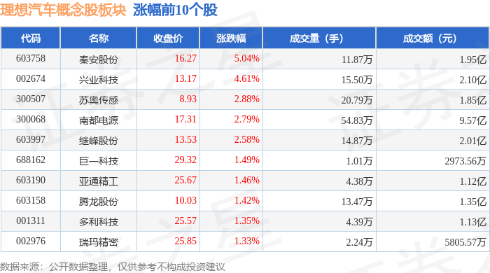 从资金流向上来看,当日理想汽车概念股板块主力资金净流出3.67亿元,游资资金净流入4875.41万元,散户资金净流入3.19亿元。理想汽车概念股板块个股资金流向见下表: