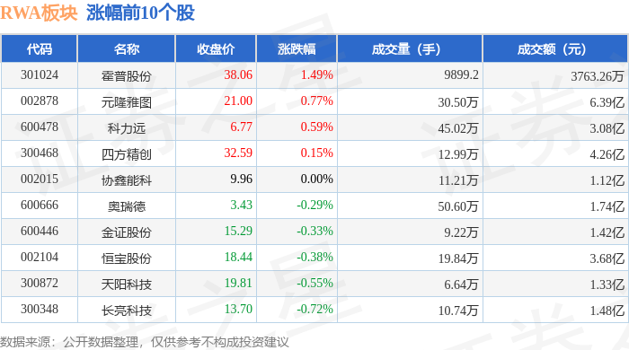 从资金流向上来看,当日RWA板块主力资金净流出4576.93万元,游资资金净流入169.0万元,散户资金净流入4407.92万元。RWA板块个股资金流向见下表: