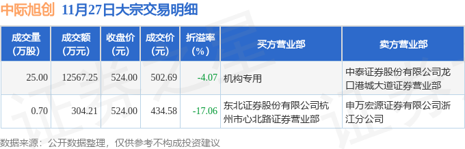 证券之星消息,11月27日中际旭创发生大宗交易,交易数据如下: