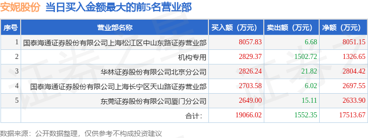 证券之星消息,沪深交易所2025年11月27日公布的交易公开信息显示,安妮股份(002235)因日涨幅偏离值达到7%的前5只证券登上龙虎榜。此次是近5个交易日内第3次上榜。
