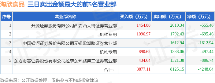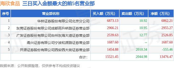 证券之星消息,沪深交易所2025年11月27日公布的交易公开信息显示,海欣食品(002702)因连续三个交易日内,涨幅偏离值累计达到20%的证券登上龙虎榜。此次是近5个交易日内第1次上榜。