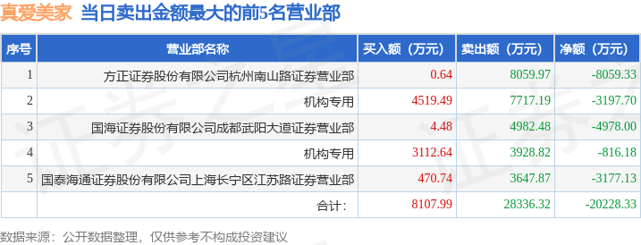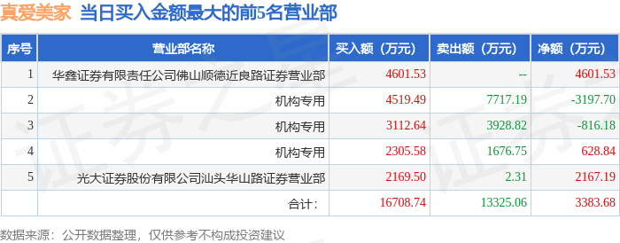 证券之星消息,沪深交易所2025年11月27日公布的交易公开信息显示,真爱美家(003041)因日振幅值达到15%的前5只证券登上龙虎榜。此次是近5个交易日内第1次上榜。