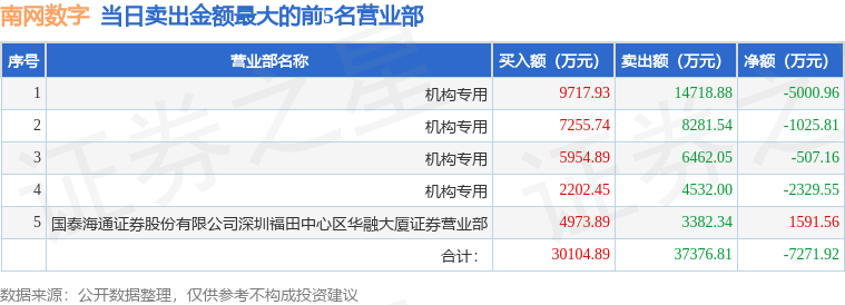 证券之星消息,沪深交易所2025年11月27日公布的交易公开信息显示,南网数字(301638)因日换手率达到30%的前5只证券登上龙虎榜。此次是近5个交易日内第3次上榜。