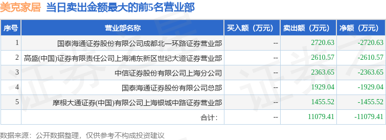 证券之星消息,沪深交易所2025年11月27日公布的交易公开信息显示,美克家居(600337)因有价格涨跌幅限制的日价格振幅达到15%的前五只证券登上龙虎榜。此次是近5个交易日内第1次上榜。