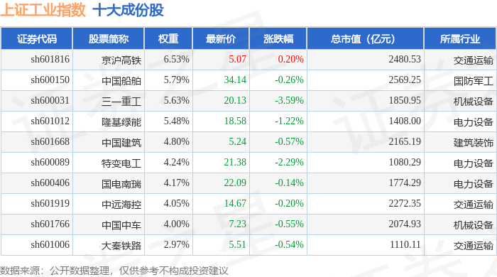 资金流向方面,上证工业(000034)指数成份股当日主力资金净流出合计19.13亿元,游资资金净流入合计4.63亿元,散户资金净流入合计14.5亿元。成份股资金流向详情见下表: