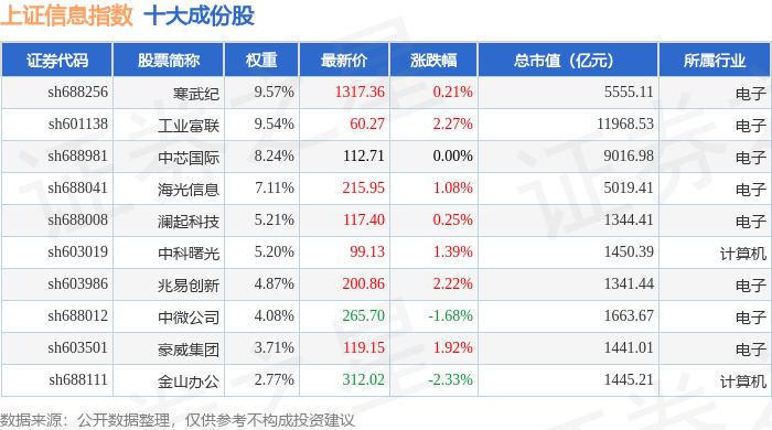 证券之星消息,11月27日,上证信息(000039)指数报收于5296.7点,涨0.2%,成交1066.83亿元,换手率1.68%。当日该指数成份股中,上涨的有19家,闻泰科技以4.02%的涨幅领涨,下跌的有29家,晶晨股份以5.31%的跌幅领跌。