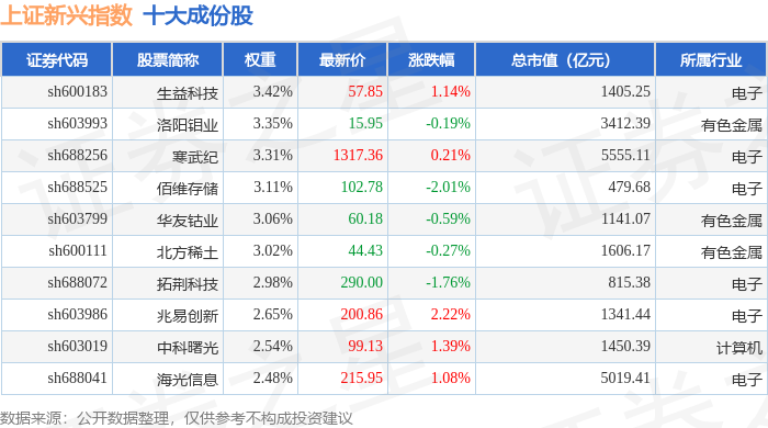上证新兴(000067)指数十大成份股详情如下: