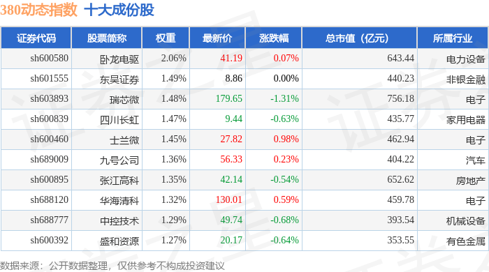 证券之星消息,11月27日,380动态(000141)指数报收于3653.13点,跌0.11%,成交761.21亿元,换手率1.4%。当日该指数成份股中,上涨的有75家,莱斯信息以6.68%的涨幅领涨,下跌的有107家,上海电影以7.06%的跌幅领跌。