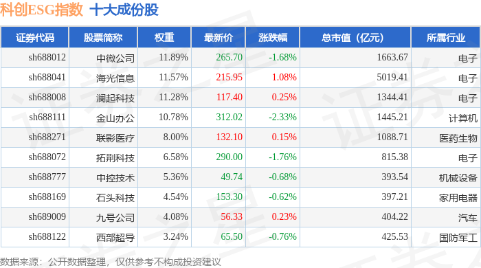 科创ESG(000691)指数十大成份股详情如下: