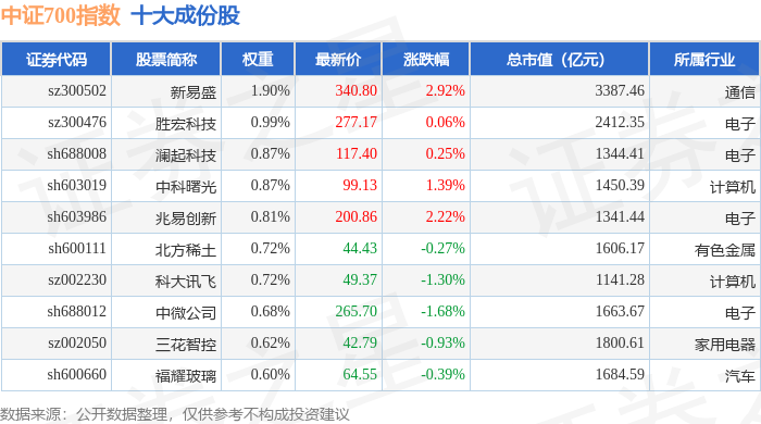 证券之星消息,11月27日,中证700(000907)指数报收于6106.15点,跌0.1%,成交4554.83亿元,换手率1.07%。当日该指数成份股中,上涨的有255家,恒立液压以10.0%的涨幅领涨,下跌的有400家,石基信息以9.98%的跌幅领跌。