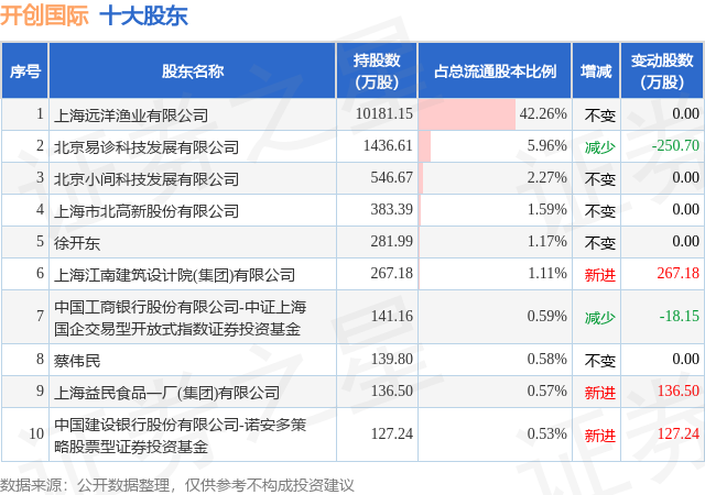 根据开创国际2025年三季报公布的十大股东详情如下: