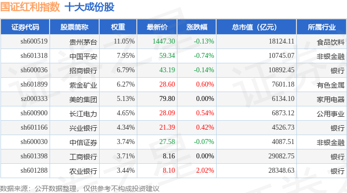 证券之星消息,11月27日,国证红利(399321)指数报收于7715.26点,涨0.13%,成交557.74亿元,换手率0.24%。当日该指数成份股中,上涨的有21家,陕西煤业以2.49%的涨幅领涨,下跌的有20家,万科A以7.13%的跌幅领跌。