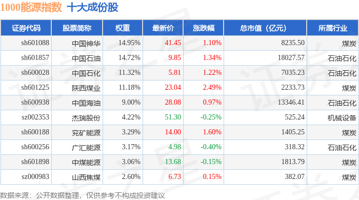 资金流向方面,1000能源(399381)指数成份股当日主力资金净流出合计7286.95万元,游资资金净流出合计1.17亿元,散户资金净流入合计1.9亿元。成份股资金流向详情见下表: