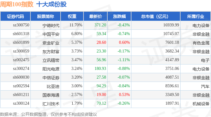 周期100(399402)指数十大成份股详情如下: