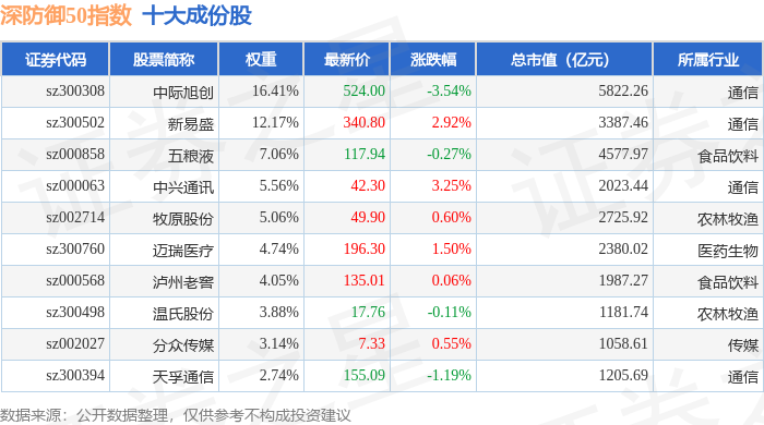 深防御50(399671)指数十大成份股详情如下: