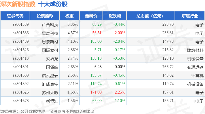 近10日内深次新股(399678)指数成份股做了调整,新纳入了1只股票,剔除了1只股票。