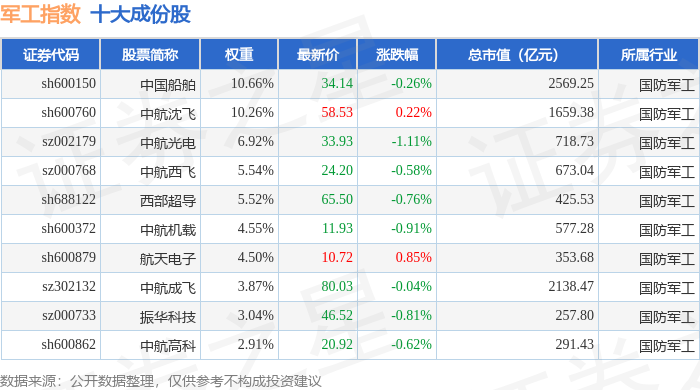 资金流向方面,军工指数(399959)成份股当日主力资金净流出合计4.06亿元,游资资金净流入合计6752.3万元,散户资金净流入合计3.39亿元。成份股资金流向详情见下表:
