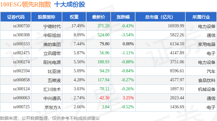 100ESG领先R(470030)指数十大成份股详情如下: