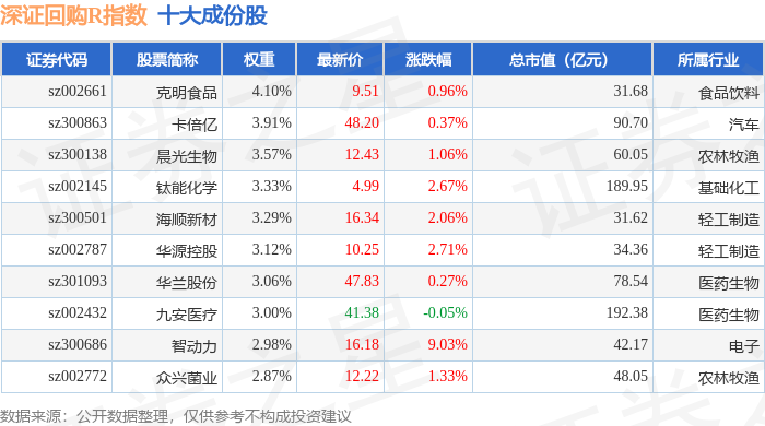深证回购R(470063)指数十大成份股详情如下: