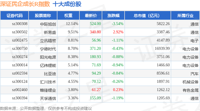 证券之星消息,11月27日,深证民企成长R(470071)指数报收于4178.57点,跌0.36%,成交1180.25亿元,换手率2.32%。当日该指数成份股中,上涨的有20家,广和通以7.09%的涨幅领涨,下跌的有30家,中际旭创以3.54%的跌幅领跌。