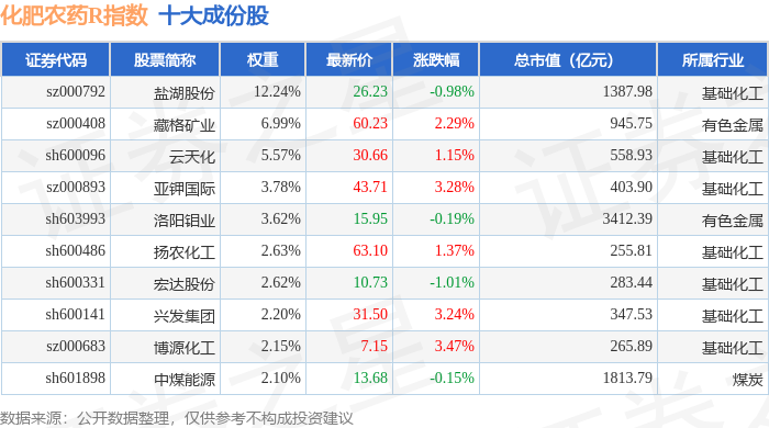 资金流向方面,化肥农药R(480035)指数成份股当日主力资金净流出合计3.91亿元,游资资金净流入合计1.81亿元,散户资金净流入合计2.09亿元。成份股资金流向详情见下表: