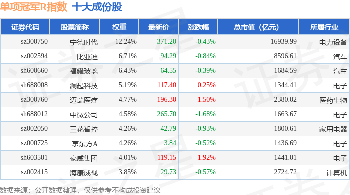 证券之星消息,11月27日,单项冠军R(480150)指数报收于9957.19点,跌0.23%,成交895.01亿元,换手率1.17%。当日该指数成份股中,上涨的有18家,恒立液压以10.0%的涨幅领涨,下跌的有31家,三一重工以3.59%的跌幅领跌。
