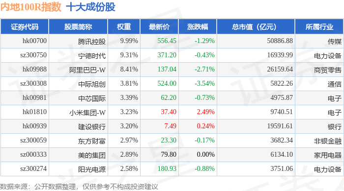 证券之星消息,11月27日,内地100R(483001)指数报收于2845.02点,跌0.5%,成交1826.01亿元,换手率0.47%。当日该指数成份股中,上涨的有42家,泡泡玛特以6.84%的涨幅领涨,下跌的有52家,万科A以7.13%的跌幅领跌。