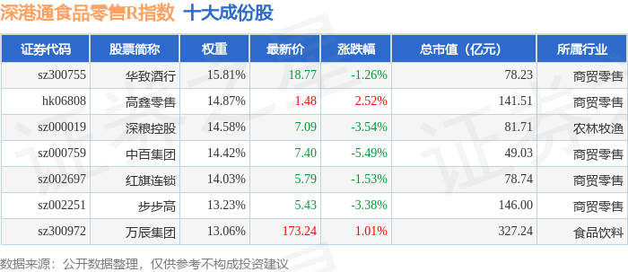 深港通食品零售R(483037)指数十大成份股详情如下: