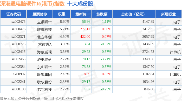 深港通电脑硬件R(港币)(483044)指数十大成份股详情如下: