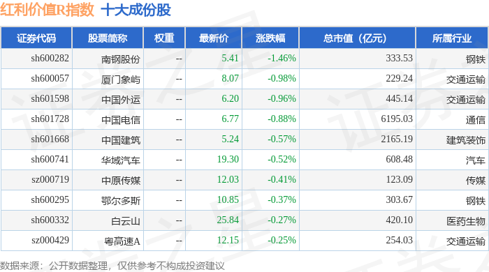 证券之星消息,11月27日,红利价值R(489016)指数报收于7761.7点,涨0.33%,成交239.69亿元,换手率0.22%。当日该指数成份股中,上涨的有31家,裕同科技以2.0%的涨幅领涨,下跌的有14家,南钢股份以1.46%的跌幅领跌。