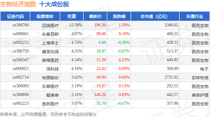 生物经济(970038)指数十大成份股详情如下: