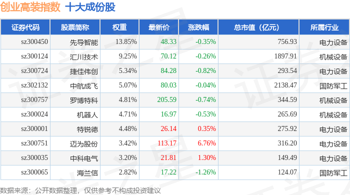 证券之星消息,11月27日,创业高装(970040)指数报收于3856.66点,涨0.0%,成交210.28亿元,换手率3.72%。当日该指数成份股中,上涨的有25家,凯格精机以7.73%的涨幅领涨,下跌的有24家,亚光科技以4.07%的跌幅领跌。